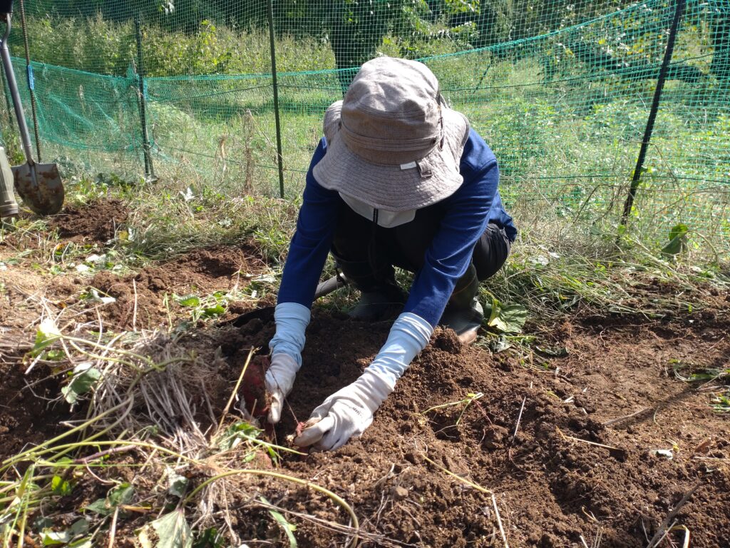 芋掘りは、子どもの頃以来という参加者もいるなか、秋の味覚をゲットすべく皆さん気合が入ります。