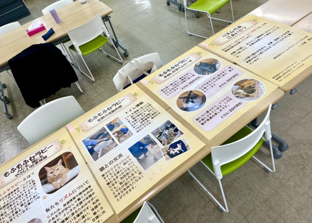 今回のパネル制作は、リズムのプログラムで保護猫ボランティアに参加している私を含め、3名のメンバーで行いました。