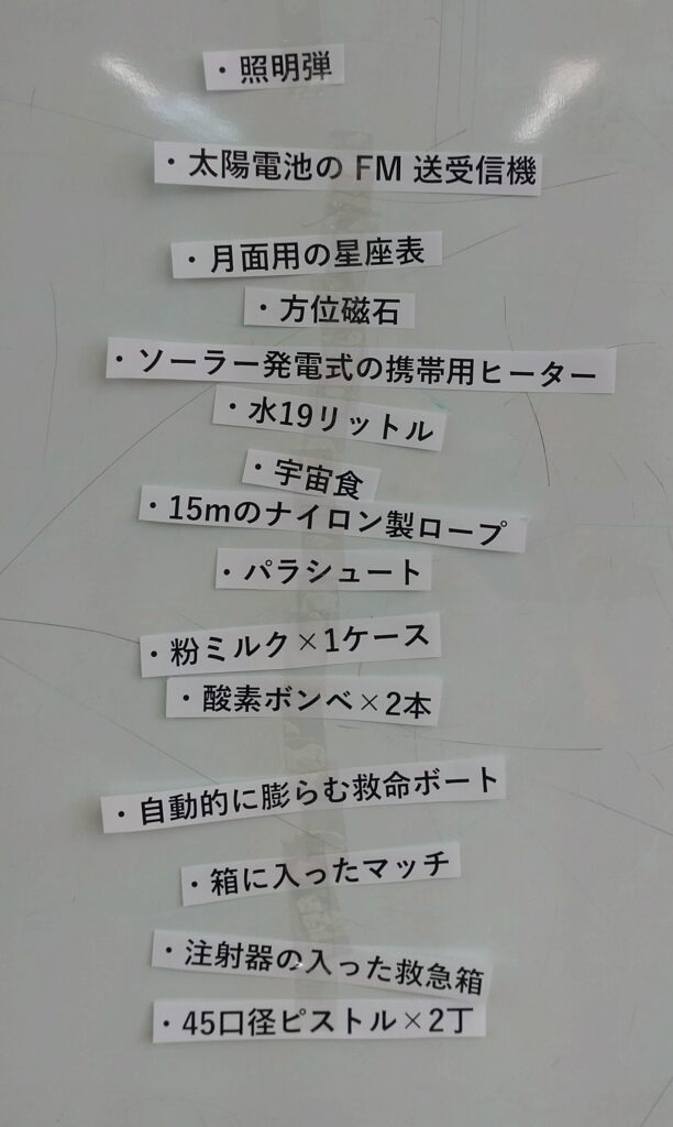 使えそうなアイテム15個を、生存に必要なものから順位づけしていく